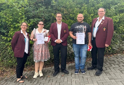 Bereits 25 Jahre Mitglied im Musikverein sind Bianca Haliti und Michael Fuchs sowie 2 weitere Personen.