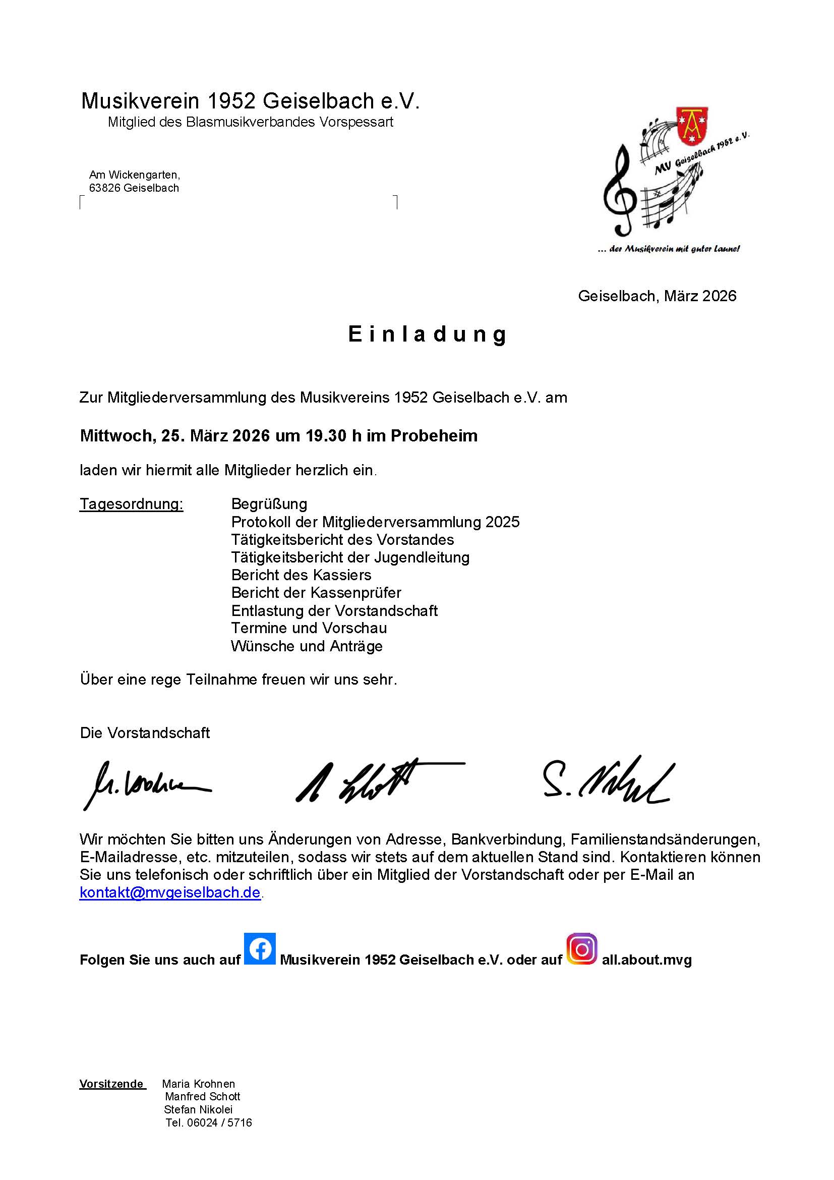 Zum besonderen Jubiläum gratulierte nicht nur der Vorstand des Musikverein Geiselbach seinem Aktiven, auch der Präsident des Blasmusikvereins Vorspessart, Herr Stefan Noll, überbrachte die Glückwünsche seines Verbandes.